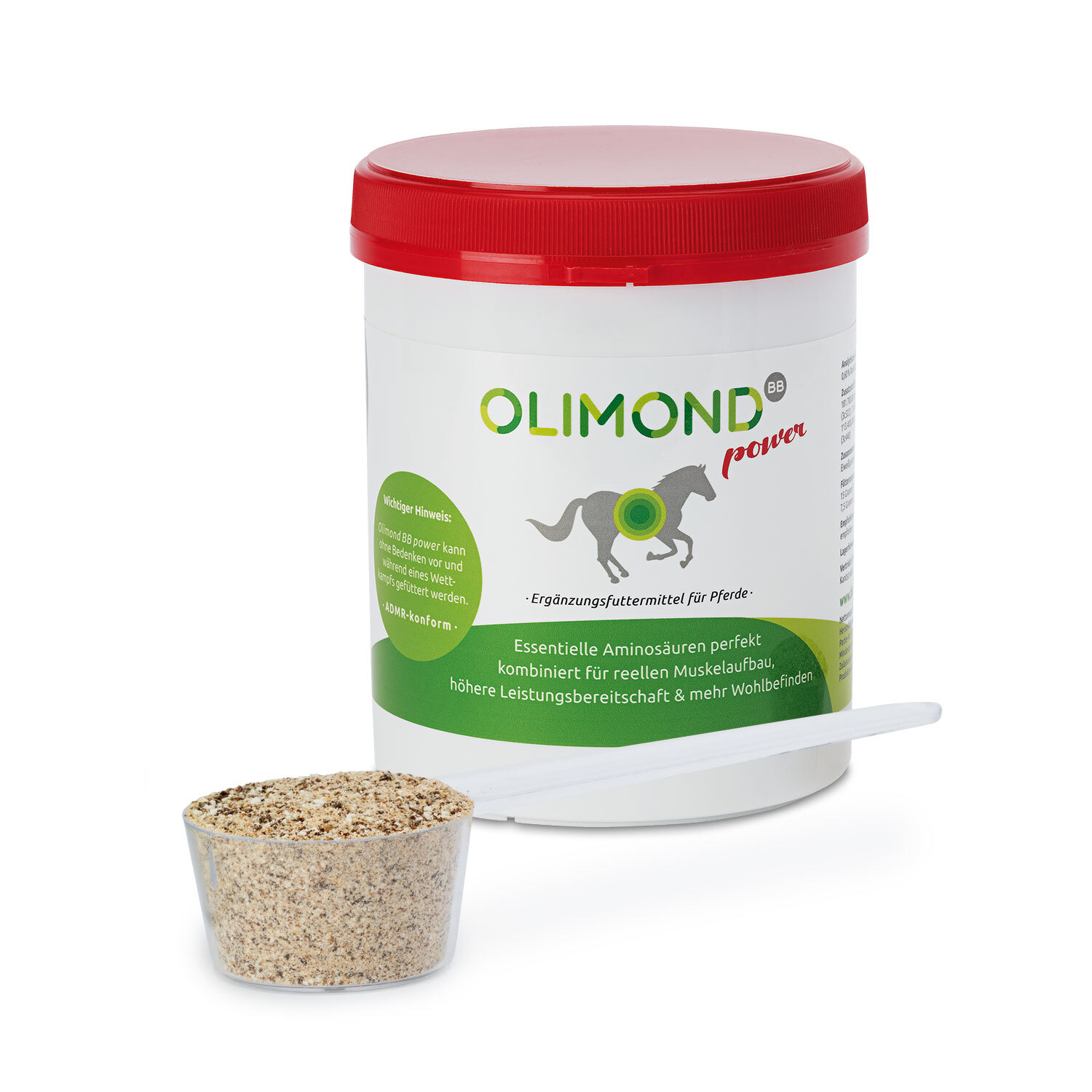 Olimond BB Power vereint sorgfältig aufeinander abgestimmte essentielle Aminosäuren mit wertvollen Fermentationskomponenten. Die Rezeptur ist darauf ausgelegt, den natürlichen Muskelstoffwechsel zu unterstützen und das allgemeine Wohlbefinden des Pferdes zu fördern.Eine gute Grundlage für eine gesunde Muskulatur bleibt jedoch regelmäßige Bewegung und gezieltes Training. Die Zusammensetzung von Olimond BB Power kann zur Unterstützung einer lockeren und geschmeidigen Muskulatur beitragen. Das schmackhafte Pulver überzeugt durch seine hohe Akzeptanz – bereits 15 g täglich genügen. Das Produkt ist dopingfrei und kann daher auch während Turnieren eingesetzt werden.